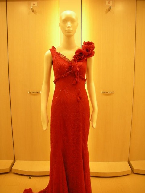 別於前兩套,這套倒有點高貴,全窄版設計,也難怪小鬼吵這說要減肥,穿這套整個曲線都出來了,至於肩上的小紅花,宴客時應該就不會配戴了