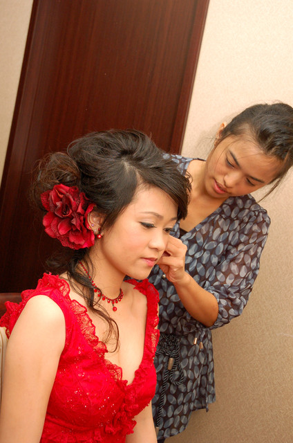 *造型師蕙蓉_也就是新秘,專接任電視台造型工作,我們一致認為她很厲害,不管是速度或是造型上,連老大可是也有兩種造型的喔,上妝完全沒用到安瓶(很多新秘都要求要加價買安瓶)妝依然服貼,強力推薦她,有興趣的朋友可找我們呦