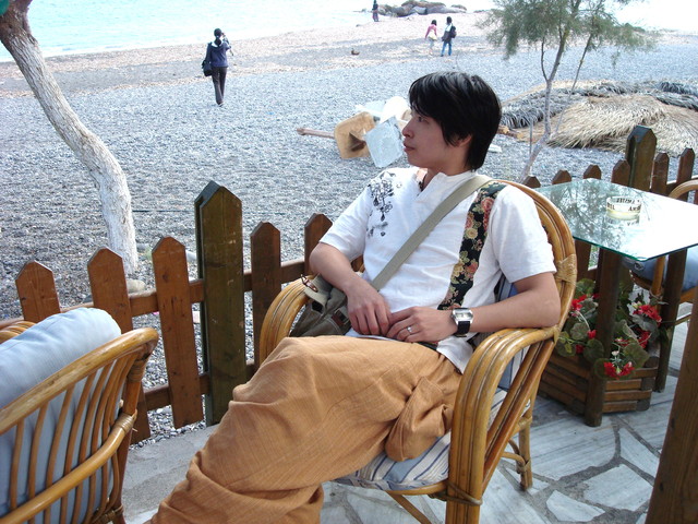 用完餐來到Santorini最著名的黑沙灘,這裡的沙子可是不能光腳丫踩的,會痛捏
