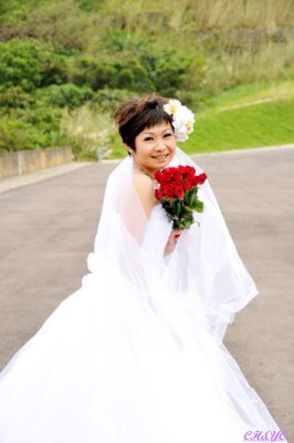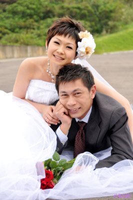 這對夫妻,還有個國小的兒子喔,只是紀念結婚十周年所以在度披上白紗,也把她列為"新娘子"