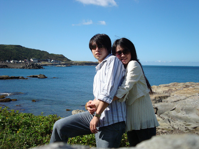 用完餐,難免到海岸線走走,因為時間的關係所以無法下水,必須觀海一下就要回到深坑繼續美食之旅,當天天氣超好,好到眼睛都快張不開,好在這回老大很細心竟然主動幫小鬼帶著太陽眼鏡(搞了半天是老大想輪流戴)