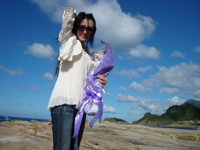 藍藍的天,白白的雲,形容當天的天氣真是不為過,尤其是雲很明顯,好可愛的感覺,感覺好像假的比較像棉花糖;海裡也有人下水游泳,整個就是很悠閒