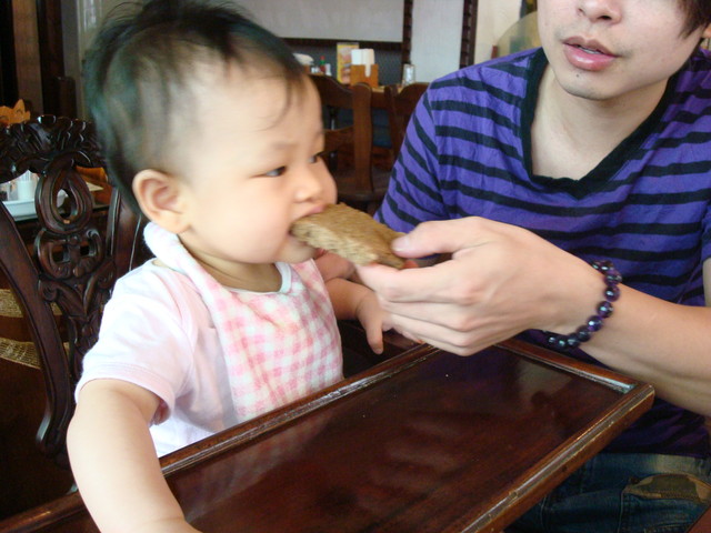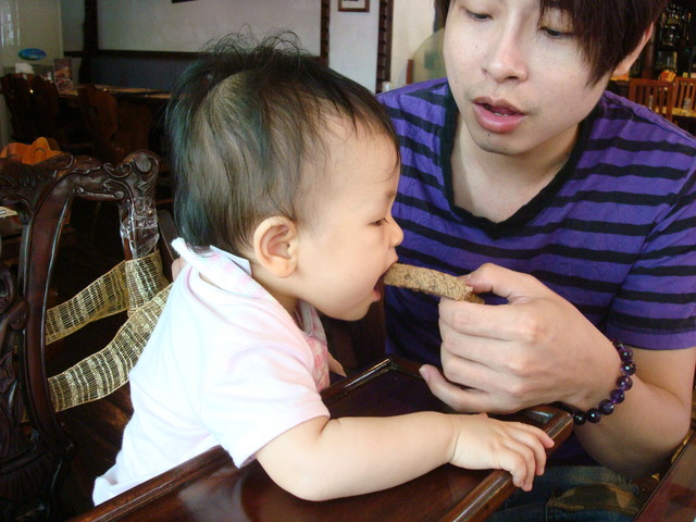 因為德國料理口味偏重,不適合給小孩吃,所以可娃只能咬麵包過過癮