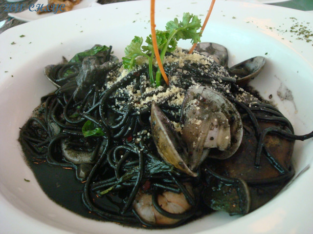 阿根廷深海墨魚麵 老大指定要另外加辣,海鮮很新鮮,用料也不少,麵條也好Q喔,真的好吃