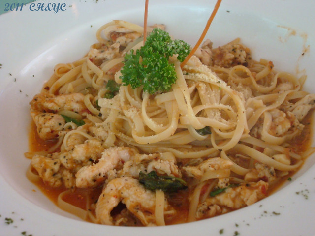 塔香茄汁辣味惡魔雞麵 雞肉很嫩呢,麵條也很入味(老大不愛這種麵條)辣味在重一點會更好