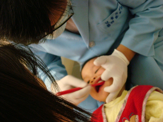 檢查牙齒跟刷牙嘍,整個就是很乖的讓醫生看牙齒