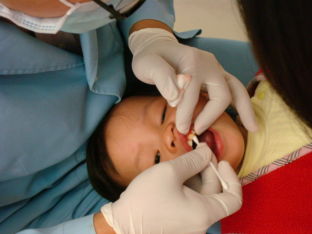 塗氟嘍,依然是乖乖的,隱約有聞到好像是水果口味的,好香喔;結束後醫生也不免稱讚可娃很乖很聽話呢