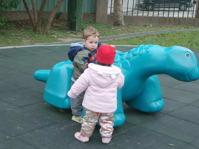 本來玩的很開心,可是一看到帥哥勾勾就跑了過去,還找這位小帥哥說了一堆我們聽不懂的話