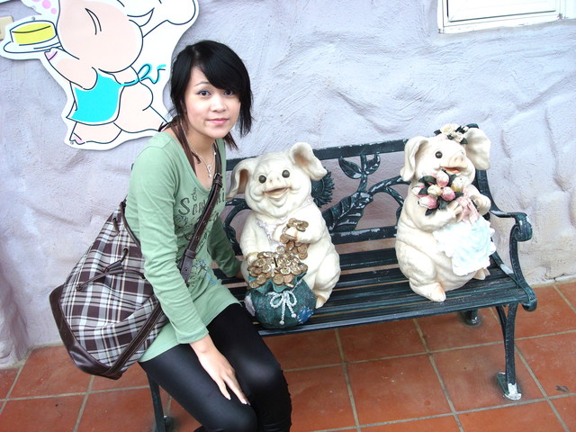 等入座時,免不來拍拍門口的"招財豬",這偏僻的地方,卻還要等位子,滿滿的人,真夠誇張