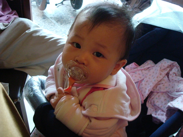 這時間點是可娃午睡時間,所以很無辜+帶點紅眼睛的看著我