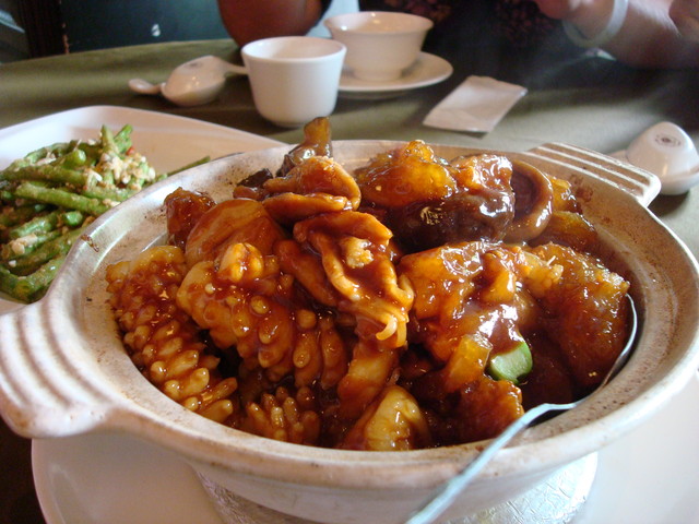 一品煲,裡面有海參、帶子、蝦仁、雞肉等許多食材,是店裡的招牌菜,ㄅ棒